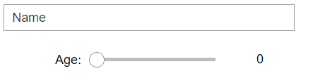 1 2 3 name = wg.Text(value='Name' ) age = wg.IntSlider(description="Age:" ) display(name,age)
