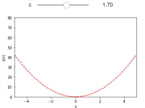 1 2 c_slide = wg.FloatSlider(value=1.0 , min=0 , max=3.0 , step=0.1 ) wg.interact(myPlot, c=c_slide)
